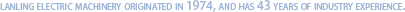 蘭菱機電 起源于1974年,至今已有44年行業經驗。